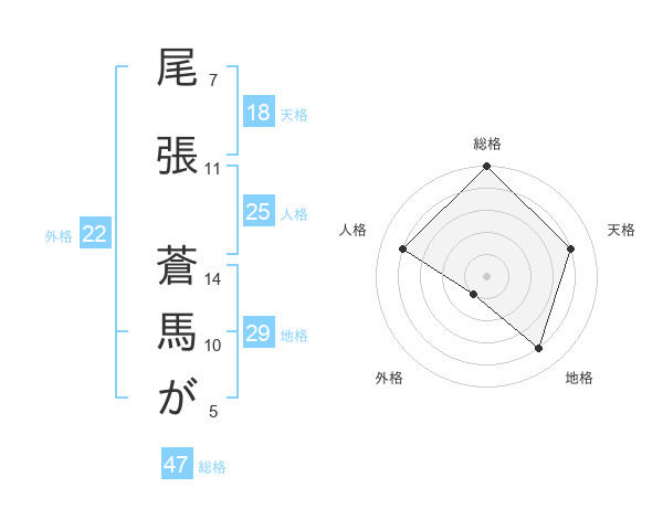 尾張 蒼馬がさんを姓名の画数から五運を鑑定