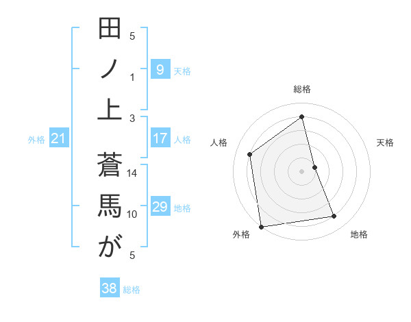田ノ上 蒼馬がさんの外格は21画の5点!