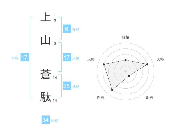 上山 蒼駄さんを姓名の画数から五運を鑑定