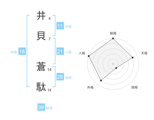 井貝 蒼駄さんの総格は39画の5点!