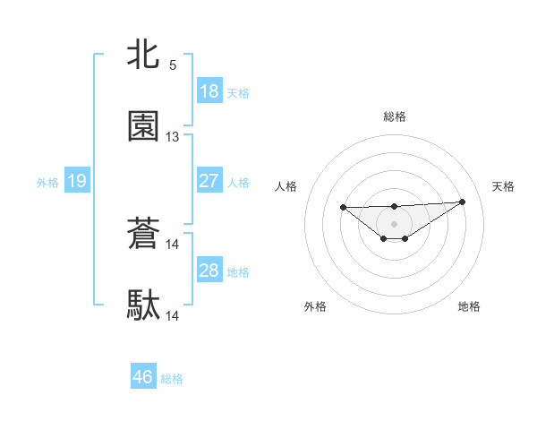 北園 蒼駄さんを姓名の画数から五運を鑑定