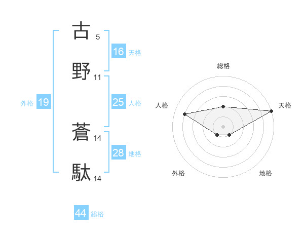 古野 蒼駄さんの総格は44画の2点!