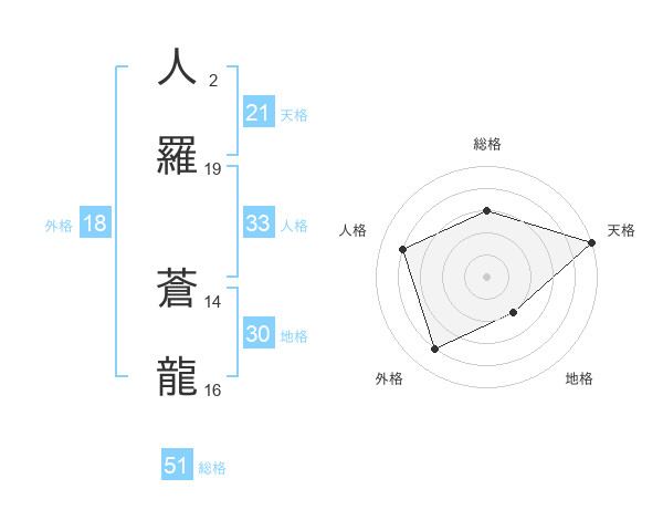 人羅 蒼龍さんの総格は51画の3点!