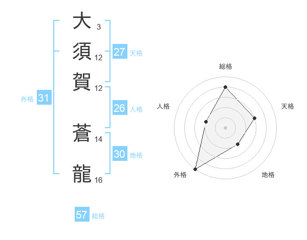 大須賀 蒼龍さんの総格は57画の4点!