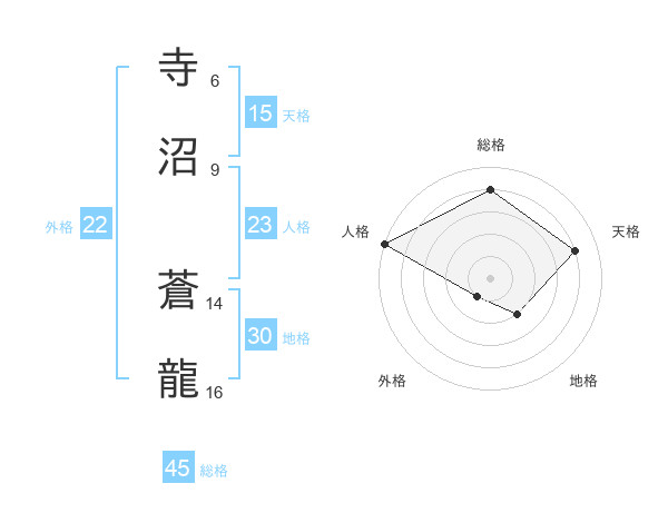 寺沼 蒼龍さんの総格は45画の4点!