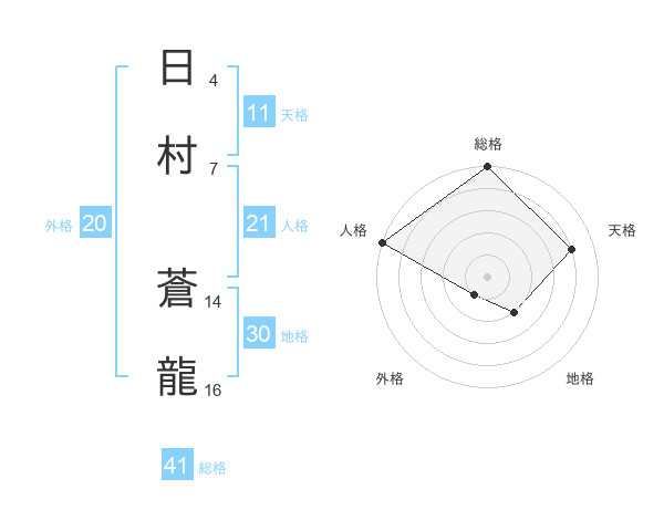 日村 蒼龍さんを姓名の画数から五運を鑑定