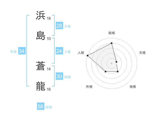浜島 蒼龍さんの総格は58画の4点!
