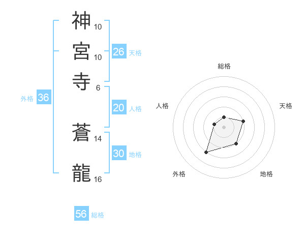 神宮寺 蒼龍さんを姓名の画数から五運を鑑定