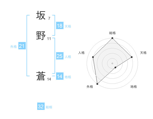 坂野 蒼さんの外格は21画の5点!