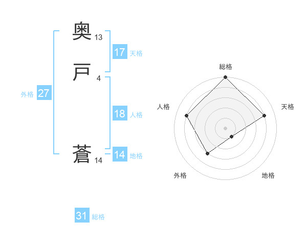 奥戸 蒼さんの天格は17画の4点!