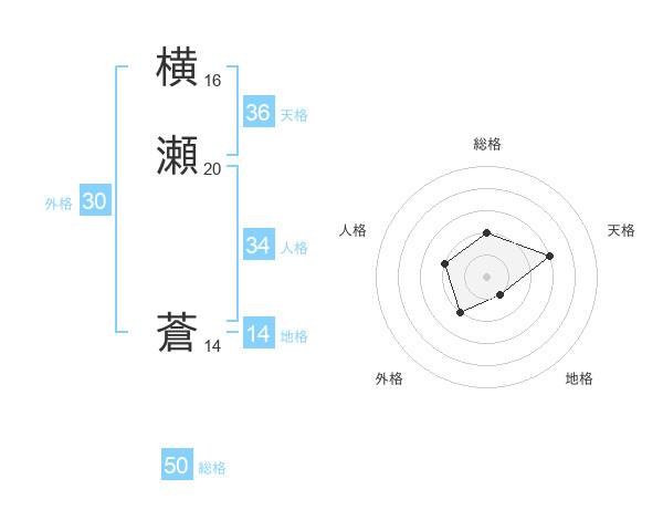 横瀬 蒼さんの総格は50画の2点!