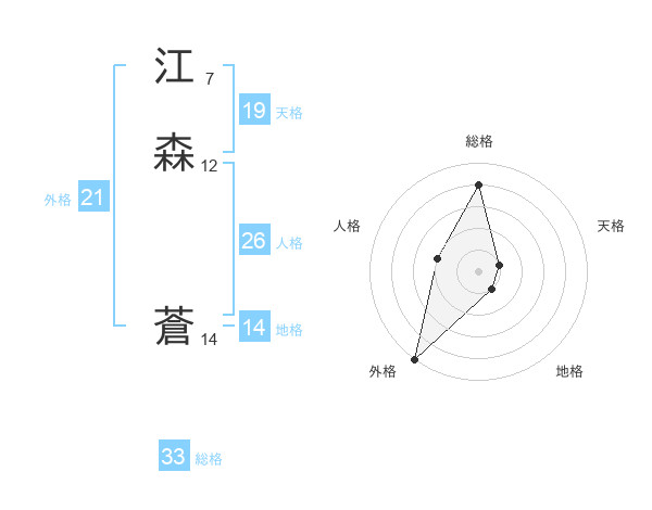江森 蒼さんの総格は33画の4点!
