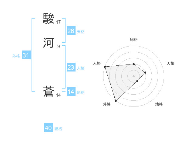 駿河 蒼さんを姓名の画数から五運を鑑定