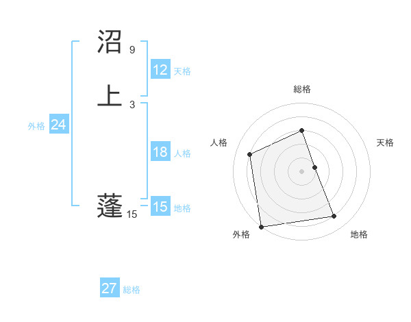 沼上 蓬さんの総格は27画の3点!