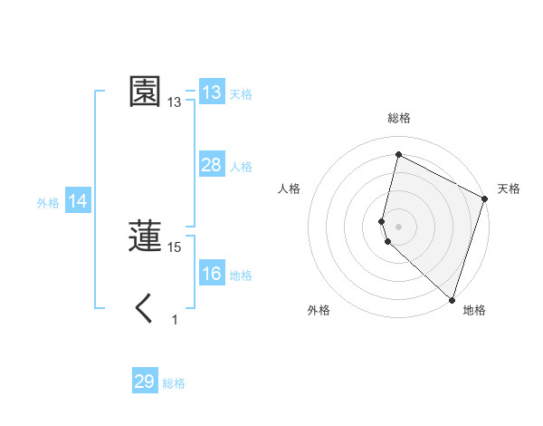 園 蓮くさんの天格は13画の5点!