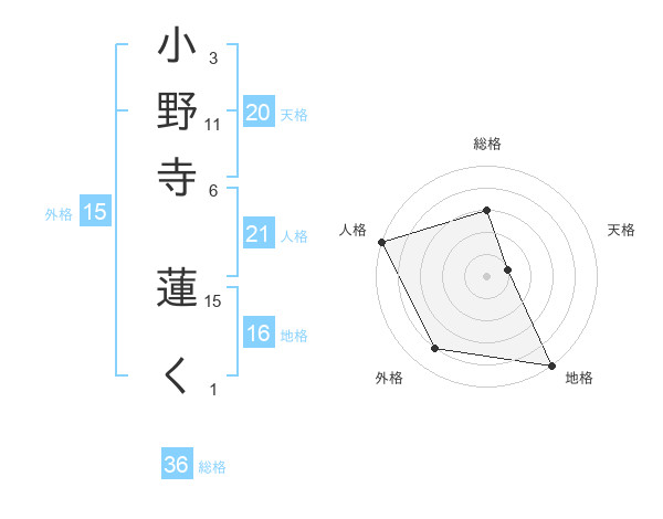 小野寺 蓮くさんを姓名の画数から五運を鑑定