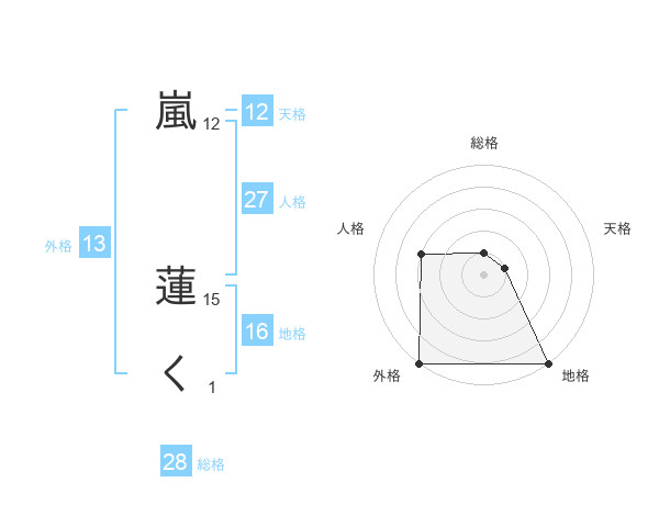 嵐 蓮くさんを姓名の画数から五運を鑑定