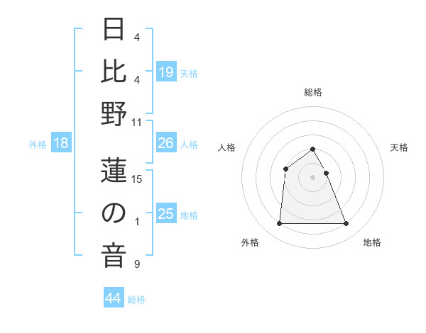 日比野 蓮の音さんの総格は44画の2点!