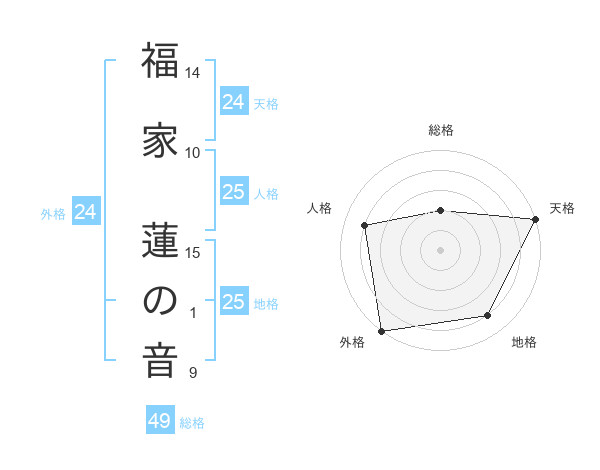 福家 蓮の音さんを姓名の画数から五運を鑑定