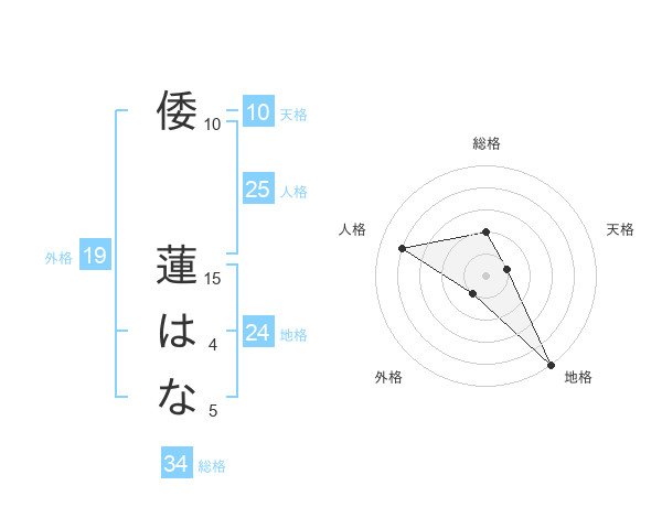 倭 蓮はなさんの地格は24画の5点!