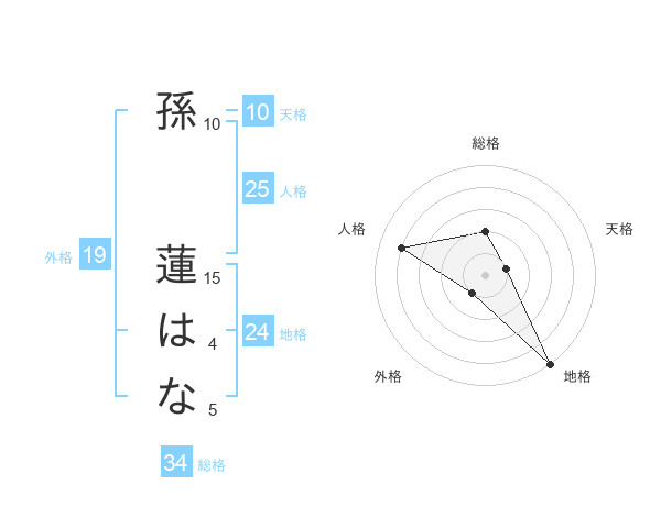 孫 蓮はなさんの地格は24画の5点!