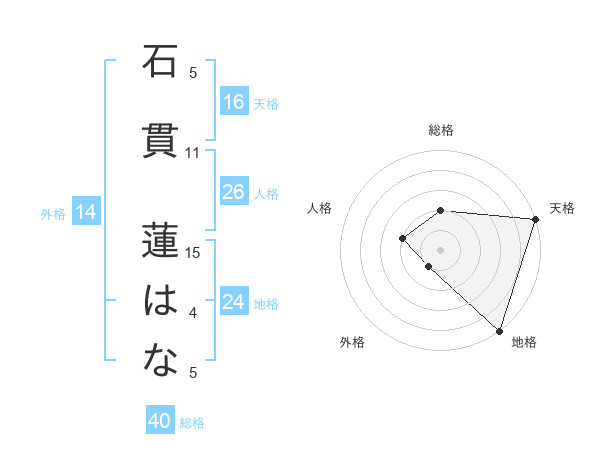 石貫 蓮はなさんを姓名の画数から五運を鑑定
