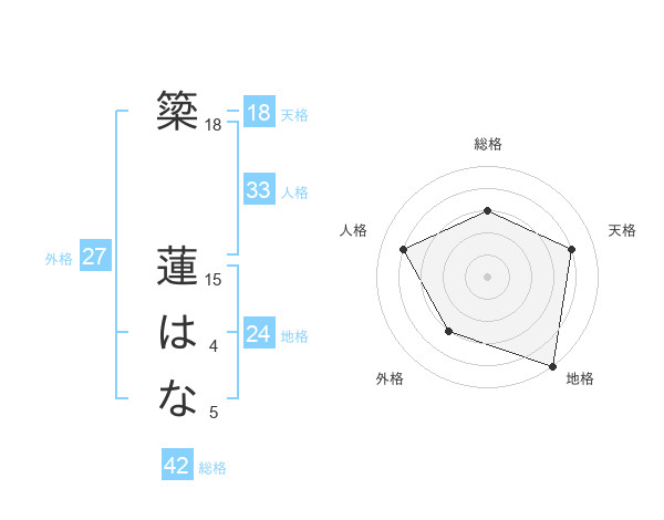 簗 蓮はなさんを姓名の画数から五運を鑑定