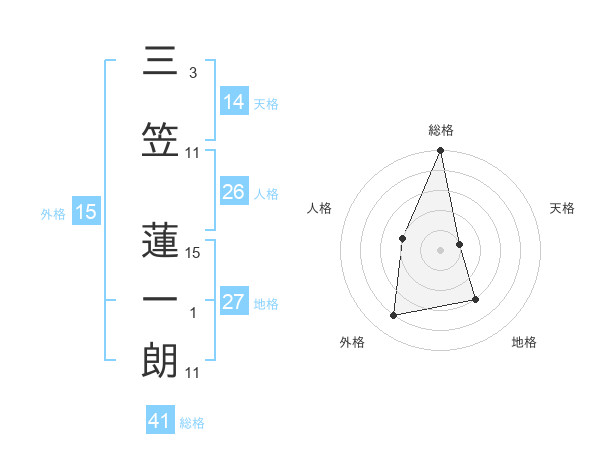三笠 蓮一朗さんを姓名の画数から五運を鑑定