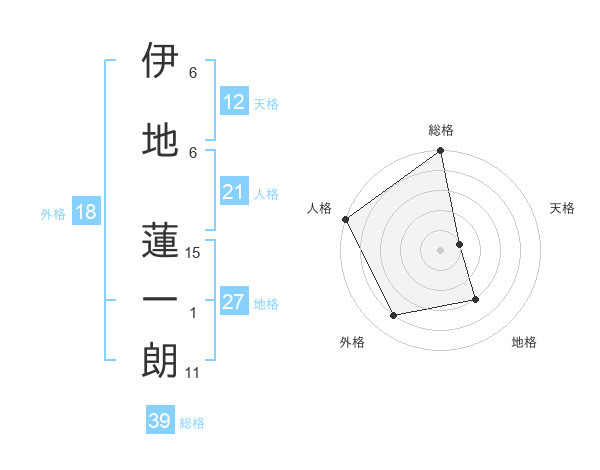 伊地 蓮一朗さんの総格は39画の5点