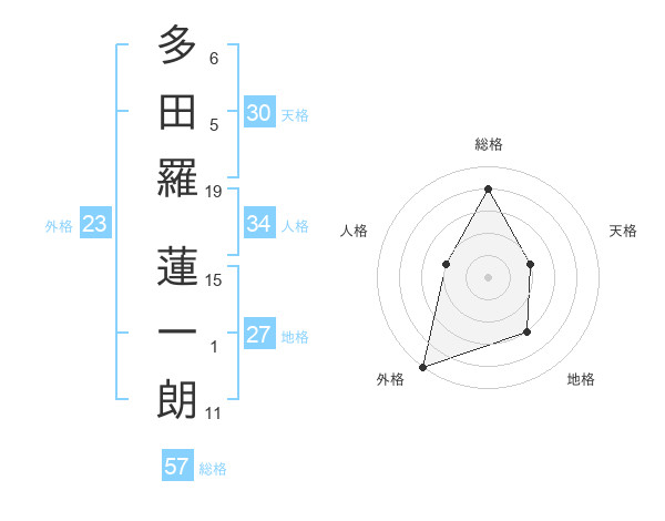 多田羅 蓮一朗さんを姓名の画数から五運を鑑定