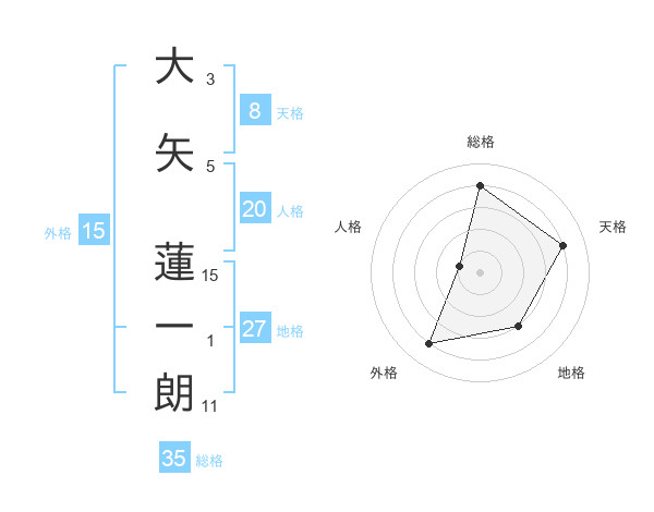 大矢 蓮一朗さんを姓名の画数から五運を鑑定