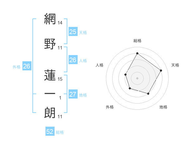 網野 蓮一朗さんを姓名の画数から五運を鑑定