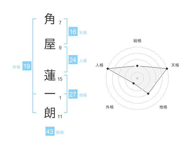 角屋 蓮一朗さんの総格は43画の2点