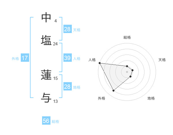 中塩 蓮与さんを姓名の画数から五運を鑑定