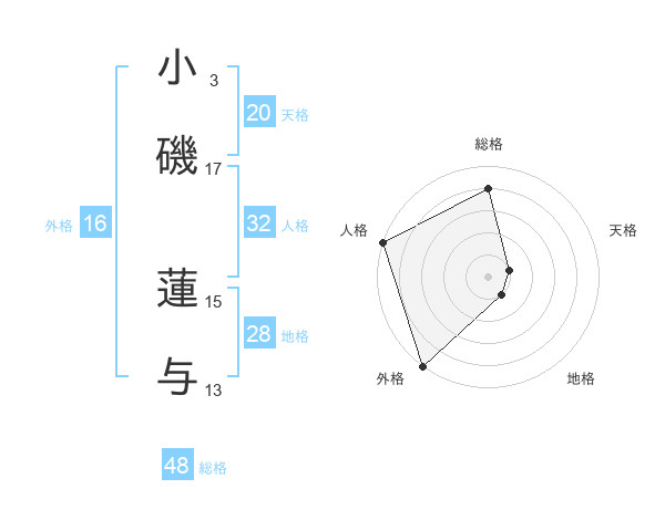 小磯 蓮与さんの外格は16画の5点!