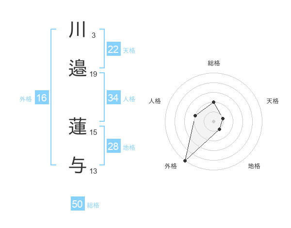 川邉 蓮与さんの総格は50画の2点!