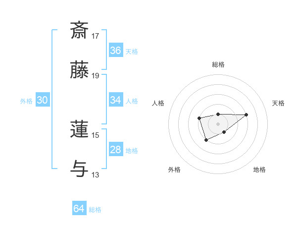 斎藤 蓮与さんの総格は64画の1点