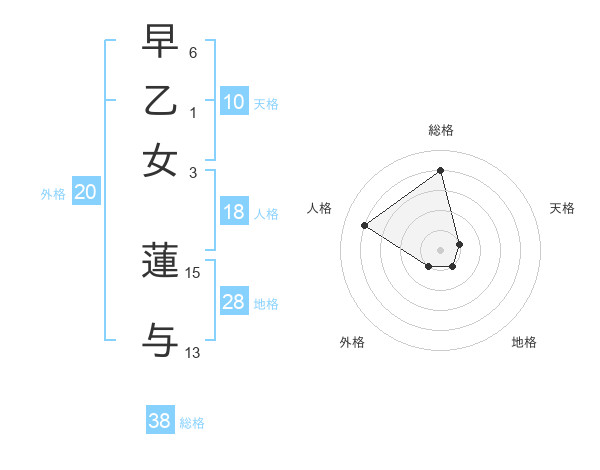 早乙女 蓮与さんの総格は38画の4点