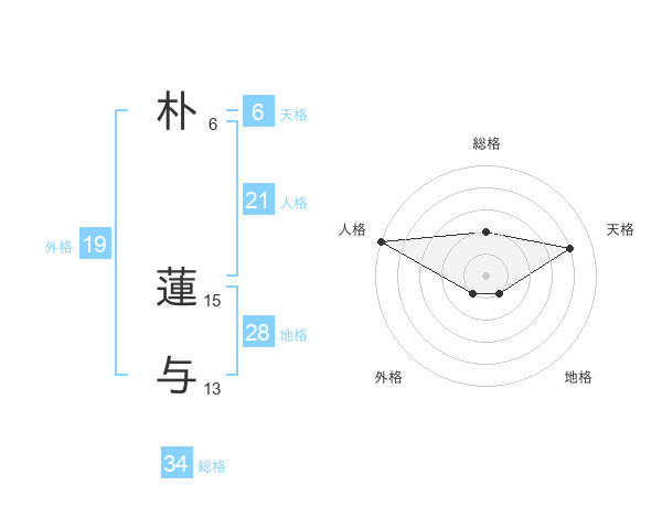 朴 蓮与さんの総格は34画の2点!