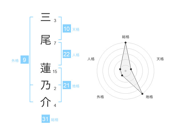 三尾 蓮乃介さんを姓名の画数から五運を鑑定