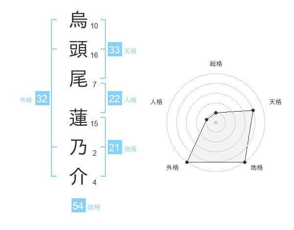 烏頭尾 蓮乃介さんの外格は32画の5点!