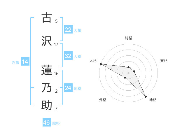 古沢 蓮乃助さんを姓名の画数から五運を鑑定