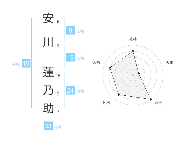 安川 蓮乃助さんを姓名の画数から五運を鑑定