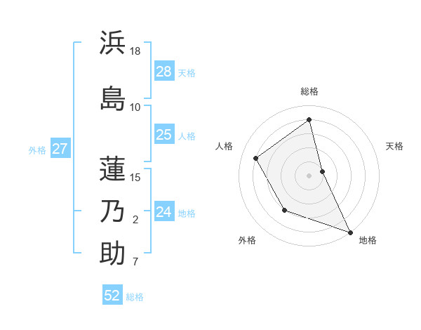 浜島 蓮乃助さんの総格は52画の4点