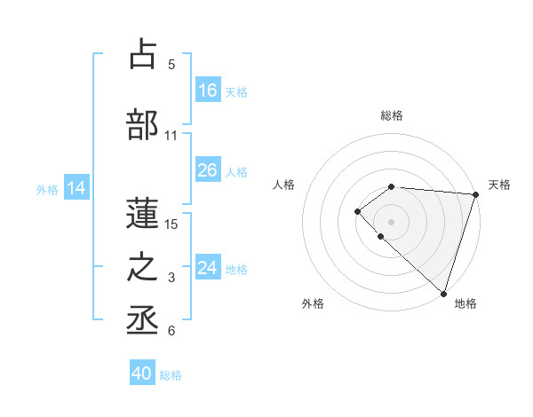 占部 蓮之丞さんを姓名の画数から五運を鑑定