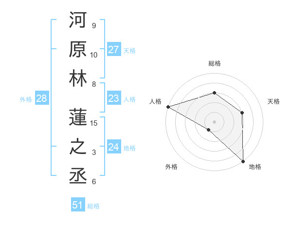 河原林 蓮之丞さんの総格は51画の3点!