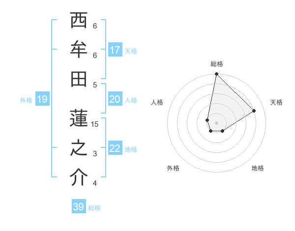 西牟田 蓮之介さんの天格は17画の4点!