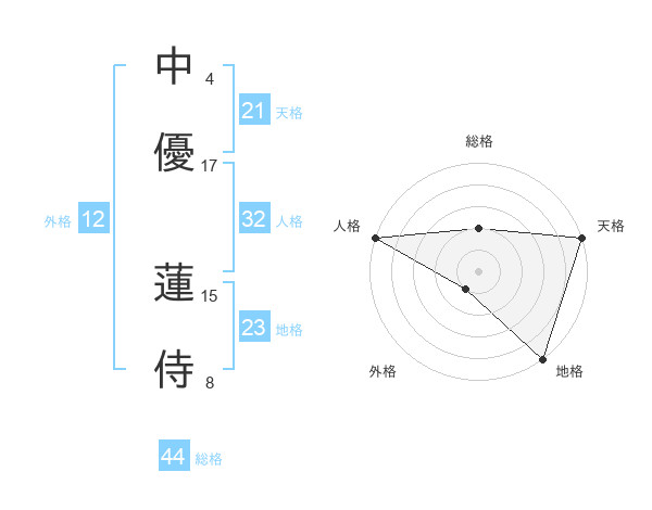 中優 蓮侍さんの総格は44画の2点!