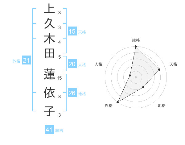 上久木田 蓮依子さんを姓名の画数から五運を鑑定