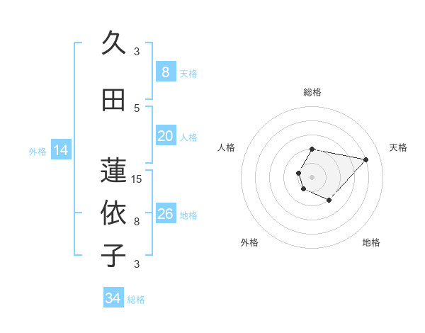 久田 蓮依子さんの天格は8画の4点!